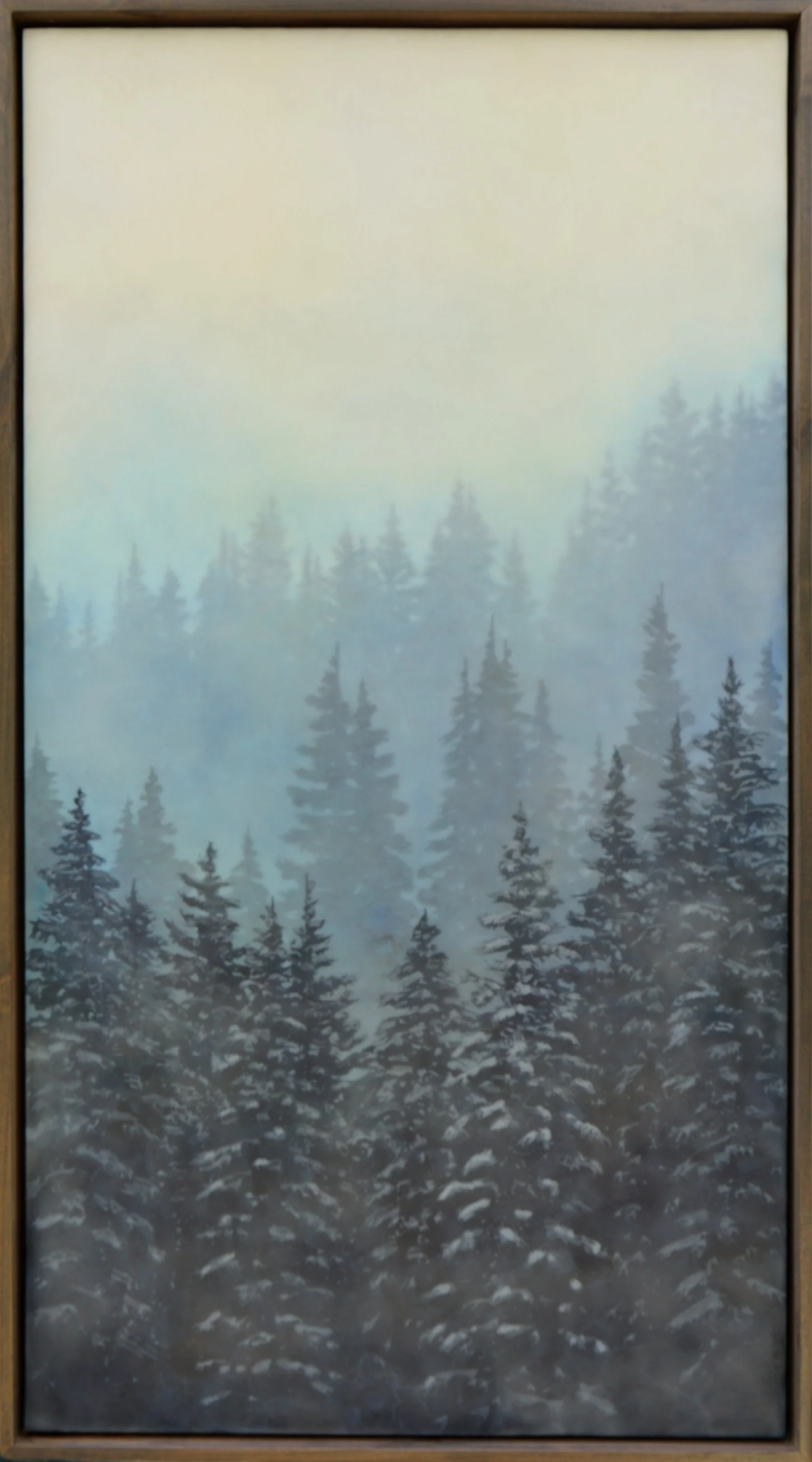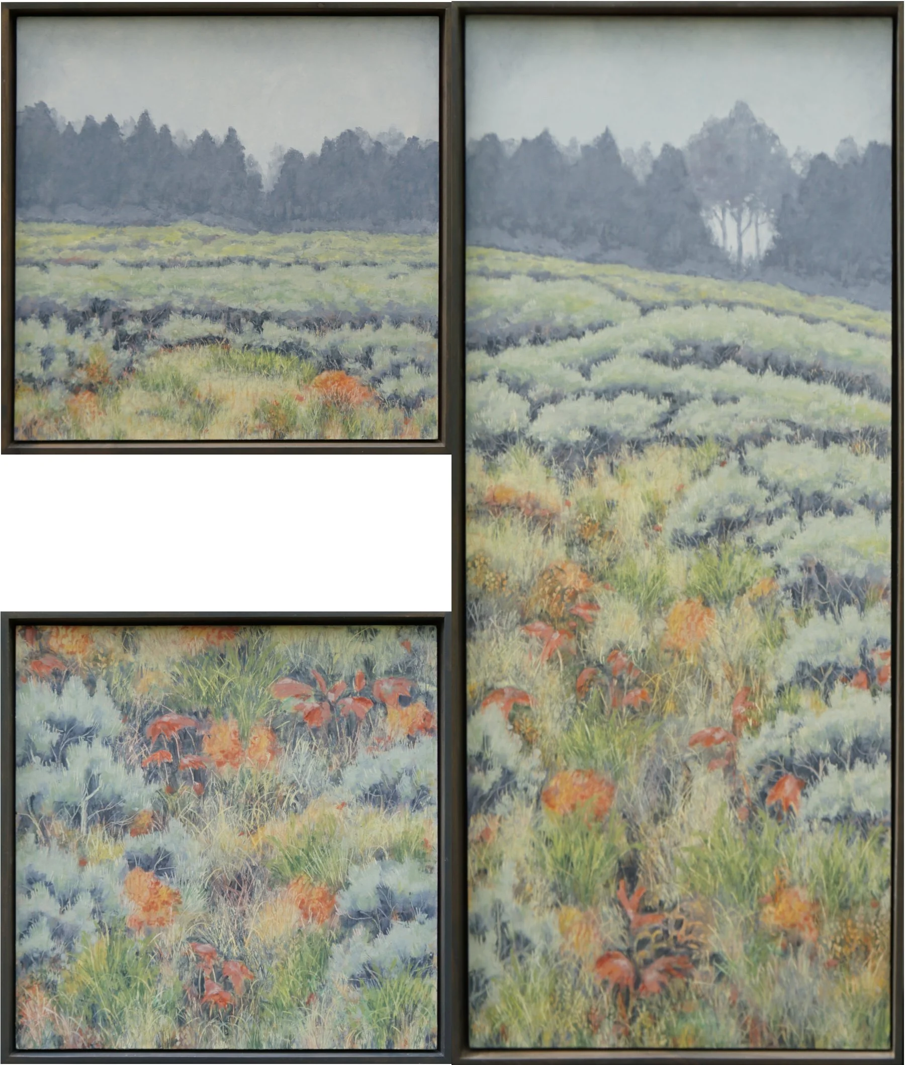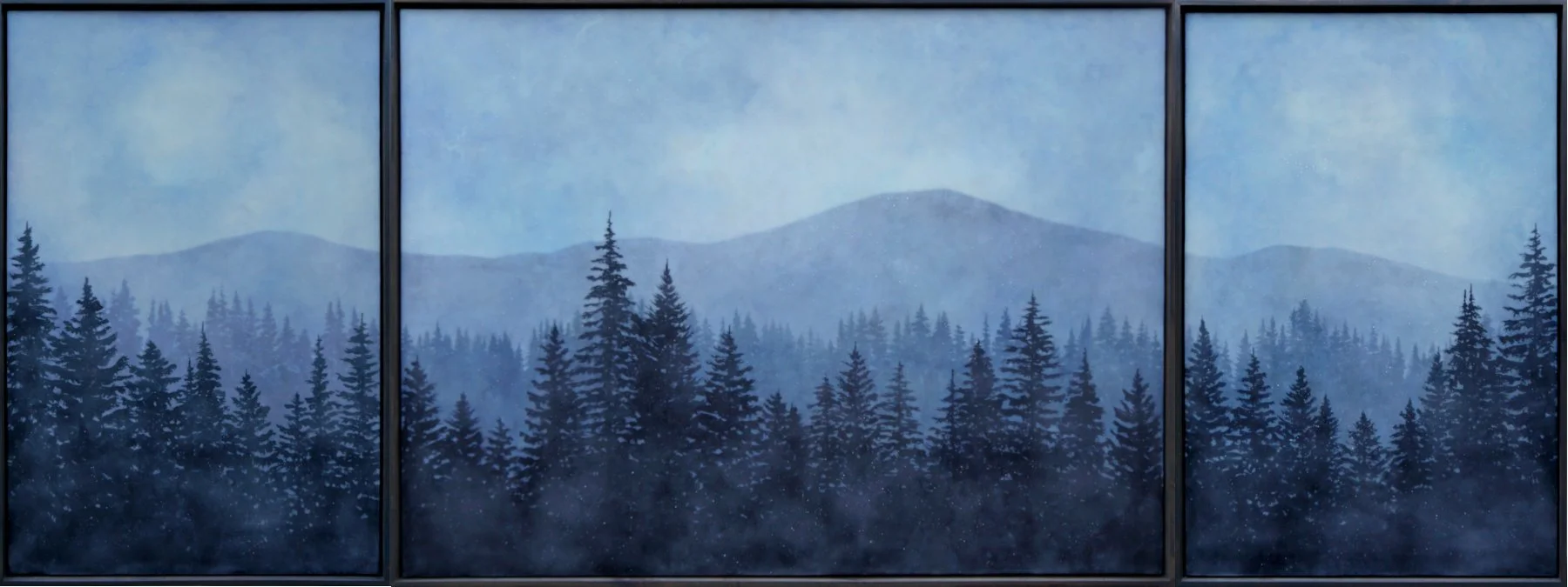 Every new painting I make builds upon the last painting I made. Each one is part of a long evolution of learning, experimenting, improving, and changing. I think collectors will see a lot of my history in these paintings, what I am most known for - my atmospheric landscapes of course, but there’s a twist. I’m looking at old ideas from a new angle, perhaps from a different window of the same house. I’ve done a number of diptychs and triptychs over the years, but these new groupings are really interesting to me, and I liked playing around with how I could envision windows in a house looking out onto a landscape, like how an architect might.